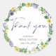 Esta é uma etiqueta de agradecimento com tema de flor silvestre rústica e folhagem para um chá de noiva. O design apresenta uma coroa floral botânica usando uma variedade de flores silvestres da primavera, folhagem rústica do campo, bem como joaninhas.