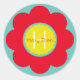 Adesivo Redondo Flor Vermelho Brilhante e Amarelo no Monograma Teó