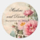 Adesivo decorativo para selos de envelope ou adesivos de favor. Conjunto de convite de casamento floral de peônia e rosa clássico e tradicional, pintado com aquarela, estilo country francês, em um estilo de diário antigo, com manchas de chá vintage para um jardim de cottage, estética cottagecore, casamento elegante e shabby. Com uma paleta de cores em azul francês empoeirado, rosa beijo, creme e verde sage com camadas envelhecidas e desgastadas que dão a este convite um senso de elegância e antiguidade. Desenhado graficamente por Audrey Jeanne Roberts, msp0118