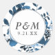 Adesivo Redondo Floral Azul e Branco com Casamento Monograma