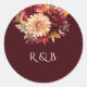 Floral Deep Burgundy Classic Round Sticker with the couples initials