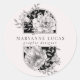 Um cartão de visita rústico e elegante com flores pretas e brancas esboçadas em ambos os lados e todas as suas informações em uma fonte facilmente personalizável. Veja na nossa loja mais opções de cartão de visita.