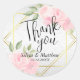 Adesivo Redondo Floral em Aquarela Rosa e Brilho Branco