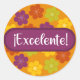 Adesivo Redondo Floral Excelente Professora Espanhola Recompensa