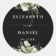 Um adesivo verde floral elegante preto e branco personalizado com seus nomes e data especial. Projetado por Thisnotme©