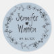 Adesivo Redondo Floral Traço De Mão Personalizado Azul Dusty
