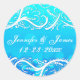 Adesivo Redondo Flores Azuis Clássicos Salvem Data Seal