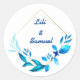 Adesivo Redondo flores azuis e folhas num rhombus ouro