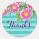 Adesivo Redondo Flores cor-de-rosa nas Turquesas "Obrigados"