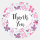 Adesivo Redondo Flores Cor-de-rosa Padrão Branco Bonito Obrigado