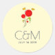 Os adesivos de casamento com as suas primeiras iniciais. Projetado com um desenho encantador de várias flores brancas e brancas, com corações gordos acoplados a um caule verde. 2 borboletas amarelas pairando perto. Desenhado com um contorno preto. Design Whimsical e fofo.
