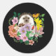 Um ouriço giro sentado entre flores coloridas de verão no pano de fundo do preto