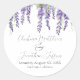 Este adesivo personalizado apresenta um belo e encantador design floral. O fundo é um branco simples e elegante, com flores de wisteria púrpura, junto ao topo. É perfeito para um casamento de Primavera ou Summer.