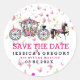 Elegante cavalo de casamento e carruagem com flores coloridas e ilustração das borboletas, Salve a data do adesivo personalizável. Cor de fundo branca personalizável.