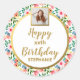 Adesivo Redondo Flores em Aquarela, Foto Personalizada, Feliz Aniv