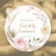 Adesivo Redondo flores rosa beges Primeira Comunhão Sagrada