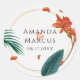 Esta design é perfeita para casamentos de temas tropicais. Apresenta uma flor na moda tropical que expele sofisticação e classe. Personalize o texto, as imagens e as fontes de seu gosto.
