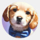 Adesivo Redondo Fluffy Puppy Adorável w Arco azul
