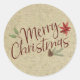 Estes adesivos redondos são perfeitos para selar seus envelopes de Natal. Eles apresentam a mensagem "Feliz Natal" em marrom contra um estilo de burlap do que fundo com sotaque de poinsettia e pinho.