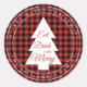 Adesivo Redondo Foco do padrão de Gingham preto vermelho natalino