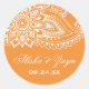 Estas selas de invólucro laranja índia são perfeitas para um casamento moderno. O design mehndi apresenta um adorável hena mandala floral e motif paisley em um fundo laranja queimado. Personalize o rótulo com os nomes da noiva e do noivo e a data do casamento. Combine este design com as peças de coordenação em roxo, turquesa, rosa e laranja na Coleção Colorida de Casamento de Paisley Indiano: https://www.zazzle.com/collections/119662428781277925.