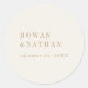 Estas selagens modernas de vintage em ouro são perfeitas para um casamento simples. O design boho neutro apresenta uma tipografia rústica única e na moda boêmica em uma cor mínima de ouro e creme de marfim. Personalize o rótulo com os nomes do casal e a data do casamento.