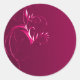 Um elegante selo redondo, este design apresenta um ornamentado cheio de decoração contra um fundo cor-de-rosa.