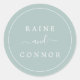 Estas selas verdes de envelope de casamento são perfeitas para um casamento moderno. Personalize o rótulo com os nomes da noiva e do noivo.