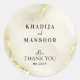 O Luxuoso Casamento de Textura de Mármore de Folha de Ouro Obrigado A Favor do Clássico Vinheta Redonda Adicione um pouco de luxo aos seus favores de casamento com esta elegante e luxuosa Textura de Mármore de Folha de Ouro Obrigado Por Favor De Vinhetas Redondas Clássicas. Criados com um espantoso pano de fundo de textura de mármore de folha de ouro, estes adesivos elegantes exaltam a opulência e a sofisticação. Os nomes dos casais são apresentados elegantemente em negrito, juntamente com uma mensagem sincera de "Obrigado" e a data do casamento. Estes adesivos luxuosos são o toque perfeito para os seus favores de casamento, adicionando um toque de realeza e elegância aos envelopes, sacos de presentes e muito mais.