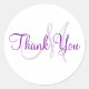 Crie o seu próprio obrigado de película roxa falso que você cola com o monograma do casal com um tom mais leve de roxo. Se você quiser personalizar o estilo, o tamanho e a cor da fonte do monograma, poderá ocultar temporariamente a imagem do gráfico "obrigado você" na camada superior, se necessário. O efeito da folha na tipografia "Obrigado" é um design gráfico digital.