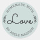 Simples e moderno caseiro com amor, ícones de folha de louro, script e adesivo verde claro de fonte moderna.
