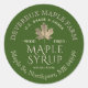 Adicione o seu nome comercial, endereço, volume de xarope e xarope de bordo. Rótulo verde elegante e dourado com uma folha de açúcar dourado.