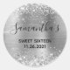 Crie seus doces 16 paus de bondade de festa de aniversário ou selas de envelop. Garota cintilante prateado cintilante nos bordos superior e inferior, sobre uma fina cinza prateada com estilo de metal embebido em papel fotográfico. Personalize os estilos de fonte para criar o seu próprio adesivo design para sua celebração especial. Você também pode alterar a cor da fonte para corresponder à sua celebração. As cores principais são prata, cinza, preto e branco.