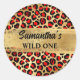 Adesivo Redondo Folha Vermelha e Ouro, Leopardo Selvagem Um