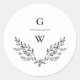 Adesivo Redondo Folhagem Delicada e Casamento Monograma