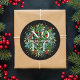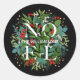 Adesivos redondos personalizados com a palavra NOEL entre folhas elegantes e frutas vermelhas, brancas e douradas com seu nome e saudação em letras brancas chiques. ITENS COINCIDENTES em nossa loja.