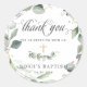 Adesivo Redondo Folhagem Rústica Verde Dourada Batismo Obrigado