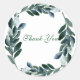 Adesivo Redondo Folhas de Aquarela Verde Botânica Rústica Obrigado