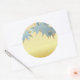 Este adesivo redondo festivo e brilhante apresenta uma bela imagem fotográfica das folhas de um Maple Japonês tornando-se castanho avermelhado no início da Queda no Jardim Japonês no Parque Hermann, Houston. As cores das folhas foram digitalmente melhoradas e pintadas com uma legal cor cerulana azul-fosco-clara. As cores primárias das folhas são azuis-fosco com pistas de bronze amarelo e avermelhado nas bordas das folhas. As cores são legal e quase pastéis. O design desse elegante e adesivo tem as folhas de bordo como uma cobertura com muito espaço abaixo para personalização com uma saudação ou um nome. A cor de fundo deste adesivo de na moda é um ouro não metálico, que pode ser substituído por sua própria fotografia, trabalho de arte, nome ou monograma. Este belo adesivo complementa uma vasta papelaria do tema Queda para uma ocasião especial ou comemorações de férias.