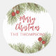 Adesivo Redondo Folhas de Pinheiro Simples Red Holly Berries