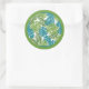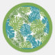 Adesivo Redondo Folhas tropicais, fundo verde,