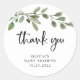 Esses adoráveis adesivos de agradecimento para chá de bebê minimalistas e neutros em termos de gênero apresentam folhas verdes botânicas simples em aquarela em um fundo branco limpo. A tipografia preta de estilo manuscrito diz "obrigado" e adiciona um toque extra de estilo moderno.