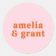 Adesivo Redondo Fonte Retro Laranja e Rosa Casamento Moderno