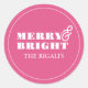 Este adesivo de Natal magenta único e simples foi projetado para combinar com minha coleção de férias Alegre & Brilhante. Ele apresenta uma fonte moderna e negrita com tipografia de roteiro sobre um fundo rosa único. Perfeito para selos de envelope pinkmas e embrulho de presentes. Para ver a linha completa, visite www.zazzle.com/dotellabelle