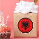 Design muito agradável, mostrando a águia dupla de cabeça da Albânia (Shqipëria) dentro de uma forma circular feita de cores nacionais.