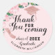 Crie adesivos personalizados, cor-de-rosa-claro, de graduação 2025 com Obrigado por vir dizendo, boné formando e ilustrações de diploma e flores cor-de-rosa. Use a modelo para digitar o nome do formando e o ano antes de fazer o pedido.