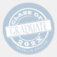 Este adesivo de formando azul, giro e empoeirado, apresenta uma "classe de" dentro de um círculo branco que se parece com um selo. Basta inserir seu nome e ano de graduação. Use-o como um adesivo de decoração em favor da festa de formatura ou selo de envelope.