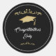 Parabéns de ornamento Dourado Elegante Preto Clássico de Graduação do Formando Round Sticker Etiquetas de graduação com boné de formatura, roteiro de tendências e ornamentos de ouro em fundo preto. Parabéns e o nome do formando - personalize com seu nome.