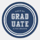 Adesivo de Graduação com estilo varisity com faixas brancas contra uma cor de fundo editável (clique em personalizar para alterar). Personalize-o substituindo o texto do marcador de posição. Para obter mais opções, como alterar a fonte e seu tamanho/cor ou o espaçamento entre letras, clique no botão "Personalizar". *Observe que a Marca d'água do Zazzle que aparece na visualização de zoom NÃO aparecerá no produto impresso final. © Rosewood e Citrus