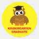 Formando do jardim de infância com coruja fofa. Etiquetas redondas personalizadas e selos de envelopes para crianças, pais, professores, educadores, etc. Material didático e acessórios para jardins de infância, pré-escola, gramática e escola primária. Cores personalizáveis. Engraçado design com chapéu de gorducho.